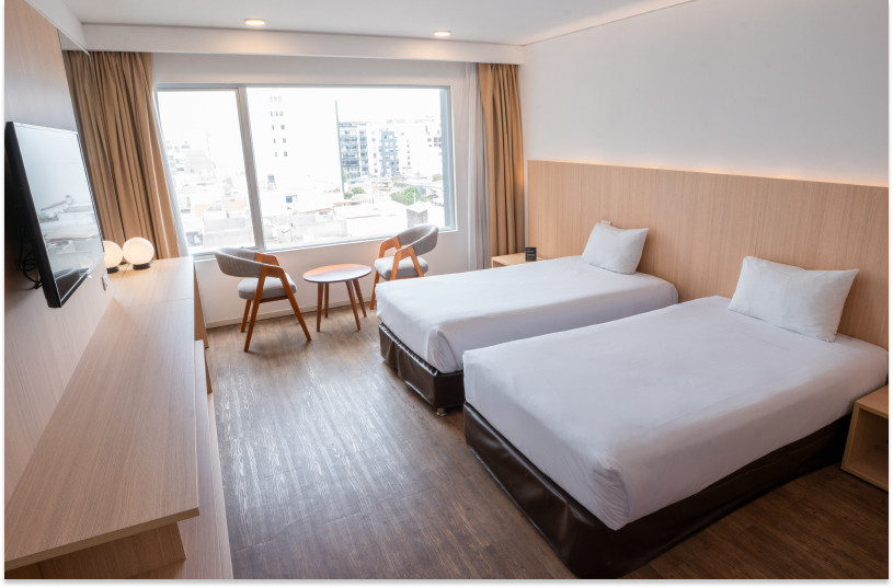 Habitación doble. Capacidad para 2 personas. Moderna y amplia ideal para disfrutar un viaje en compañía.
